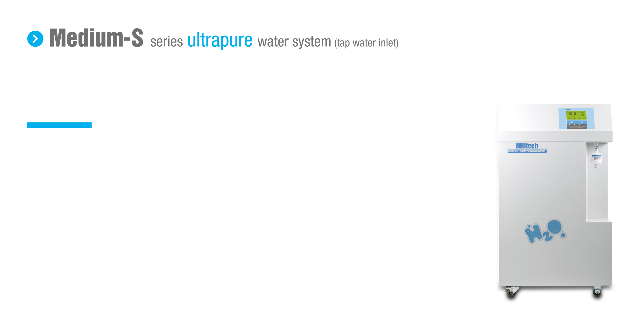 With LCD controlling system, 3 way water quality sensor, cartridge replacing alarm, timing and quality dispensing, stainless steel shell, built-in 2 set pressure tanks, single stage RO system and 1 pump, Medium-S series ultrapure water system is superior choice of ultrapure water’s mass usage for high grade experiments.