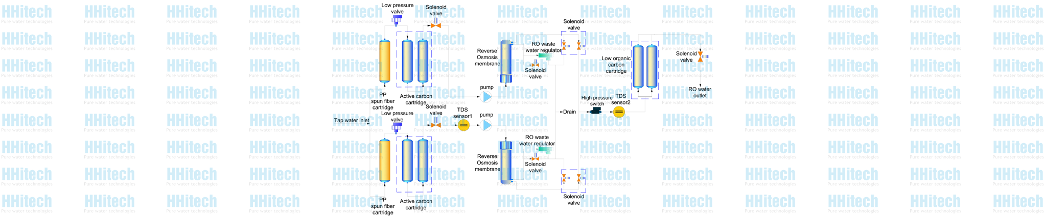 Medium-1600 series is nearly the smallest water system, with the same output-250 liters/hour. It meets the requirements of water for production and central water supply.