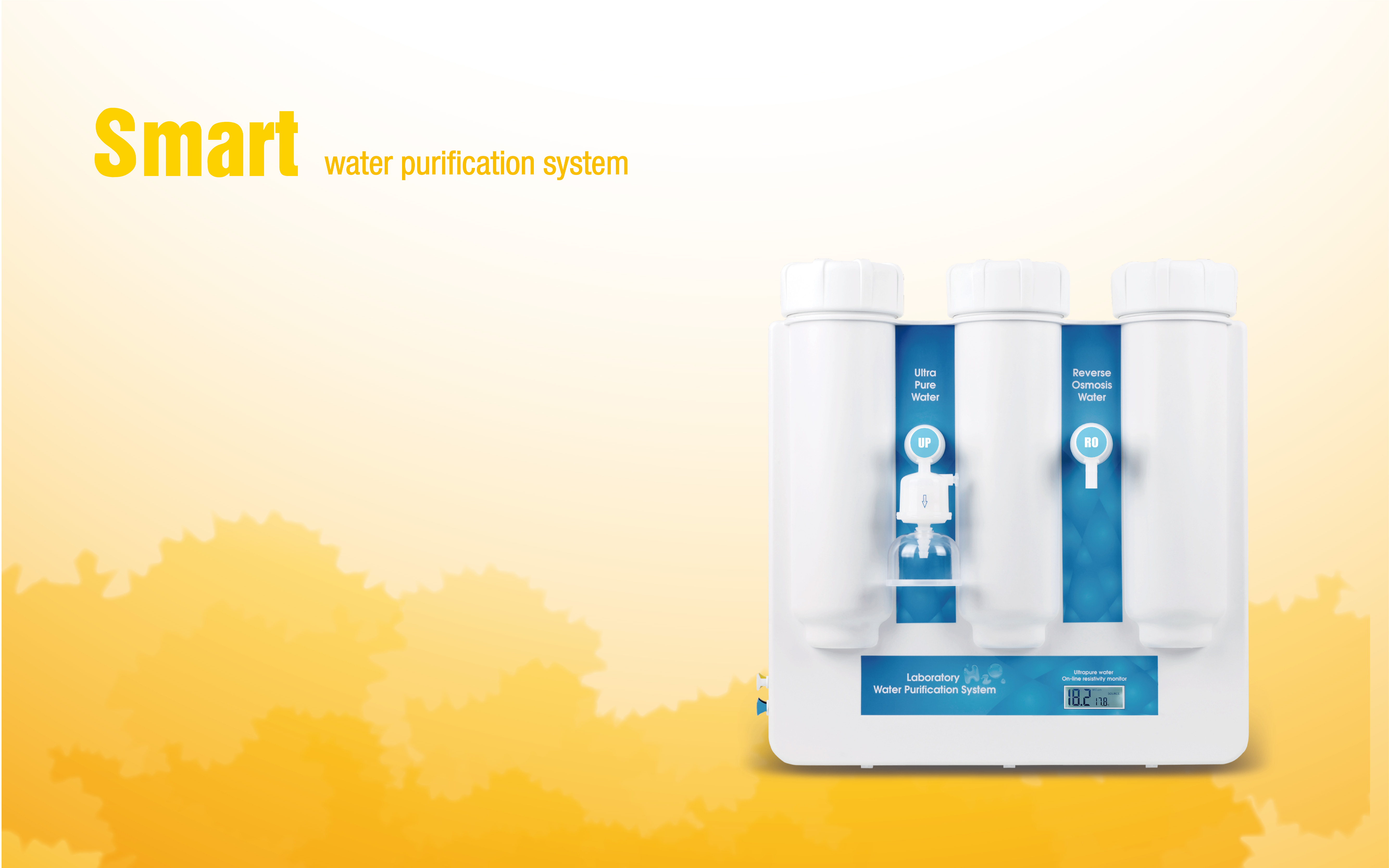 Smart series,the smallest and most compact lab water system from tap to ultrapure water,integrating pretreatment,RO,DI,UV,UF and terminal filter into one.